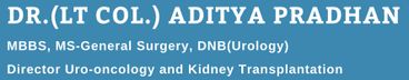 Dr Aditya Pradhan is one of the leading urologists in Dwarka, Delhi. He has 26 years of experience in Urology and his special interests are in Uro-oncology and Kidney Transplantation. He has focused on Robotic Surgery and Laparoscopy. He completed his MBBS from Armed Forces Medical College (AFMC), Pune in 1988, MS – General Surgery from Armed Forces Medical College (AFMC), Pune in 1995 and DNB (Urology) from National Board Of Examinations in 2004. He is a member of the Urological Society of India (USI), American Urological Association (AUA), European Association of Urology and Indian Society of Organ Transplant(ISOT). Dr. Aditya Pradhan practices at Venkateshwar Hospital New Delhi .He also has an OPD at Doctor's `Hub Clinic in Dwarka and Kalpavriksh Clinic at Dwarka, New Delhi. Some of the services provided by the doctor are: Kidney stone surgery, Kidney Transplant Surgery and surgery for cancers of Urinary bladder, Kidney and Prostate .Prior to 2012 , Dr Aditya Pradhan completed 23 years of service in the Army Medical Corps .